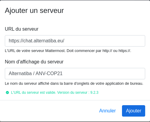 • Télécharger l'application bureau : https://mattermost.com/download/