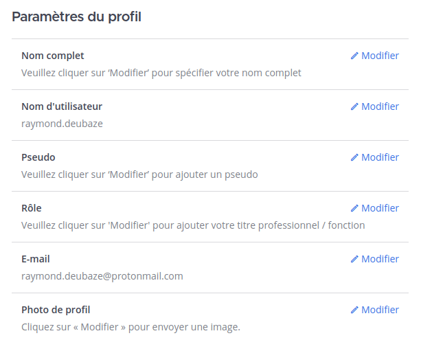3. modifie ensuite le champ Pseudo, c'est ce champ qui sera affiché aux autres utilisateur·ices